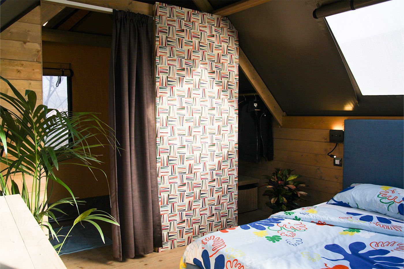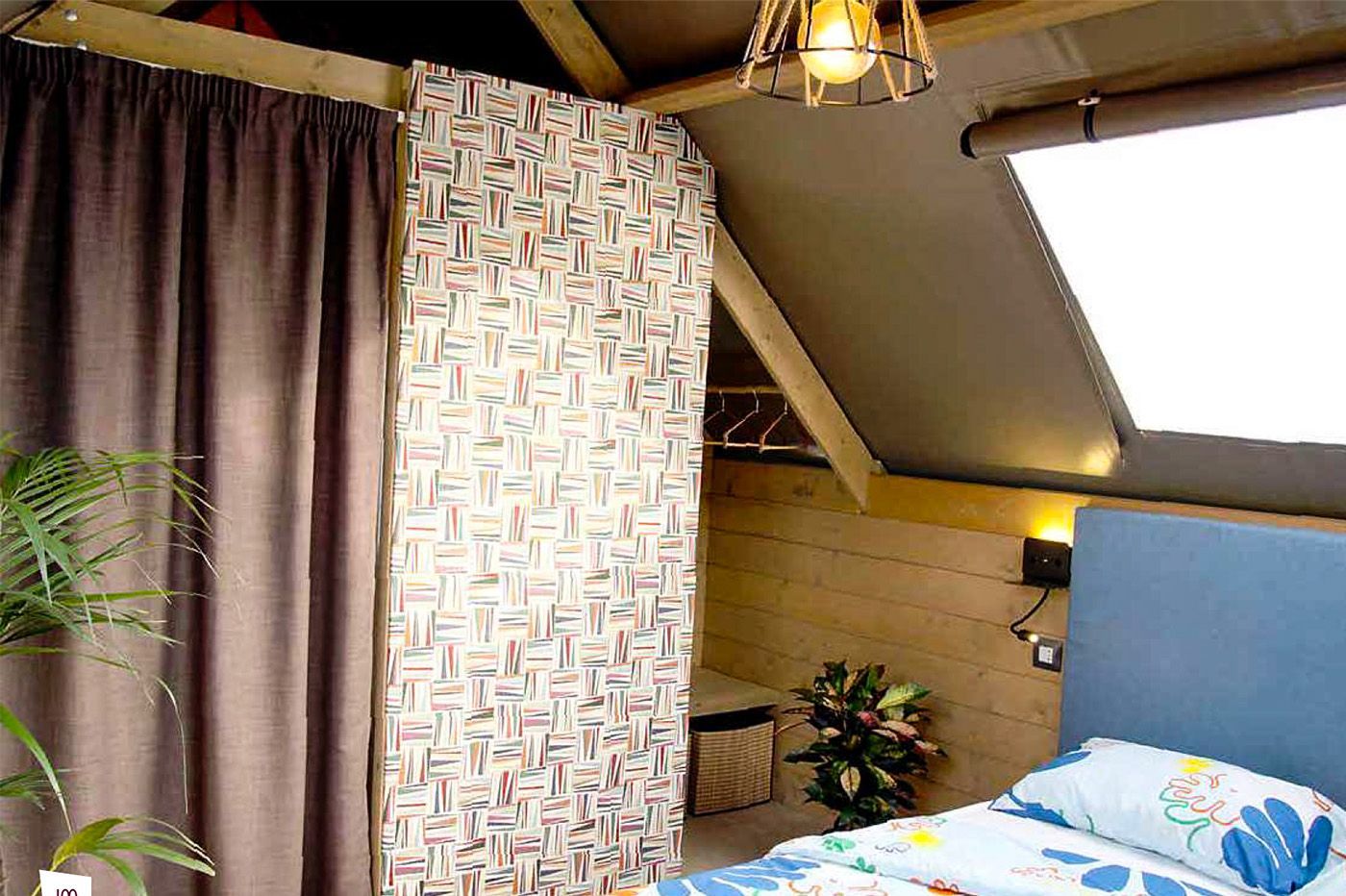 - Letto matrimoniale 140/16×190 con giroletto in tessuto di juta