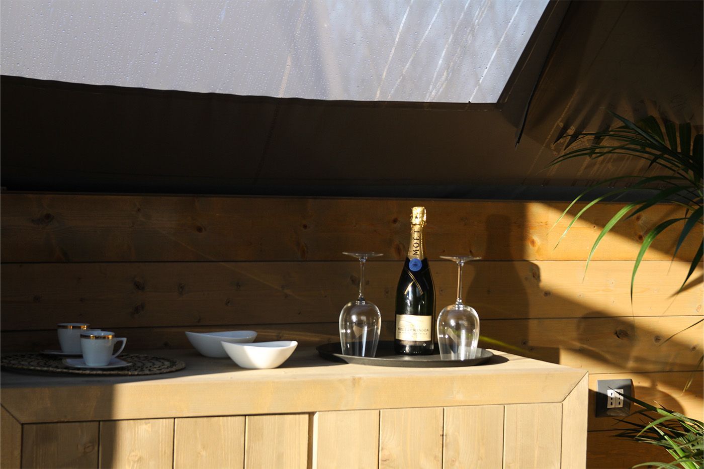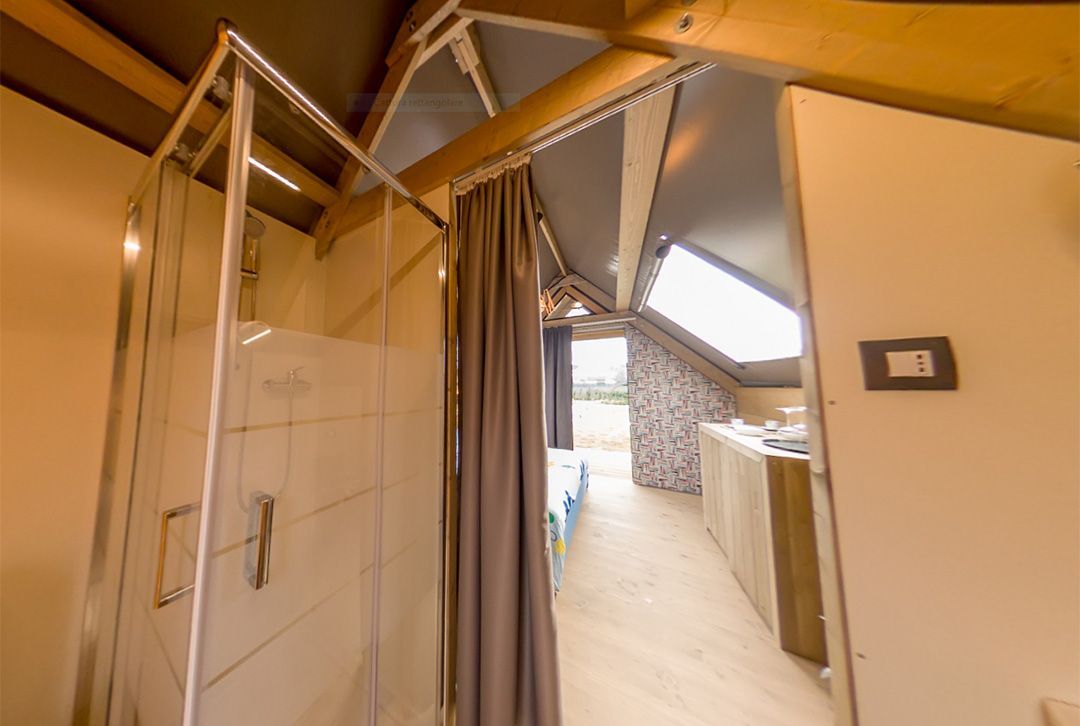 - Bagno Compy completo di lavabo, wc, vasca 70×120 rivestita in legno con doppio erogatore a nappa e tendina a raggiera, bollitore ad accumulo da 15/30 litri.