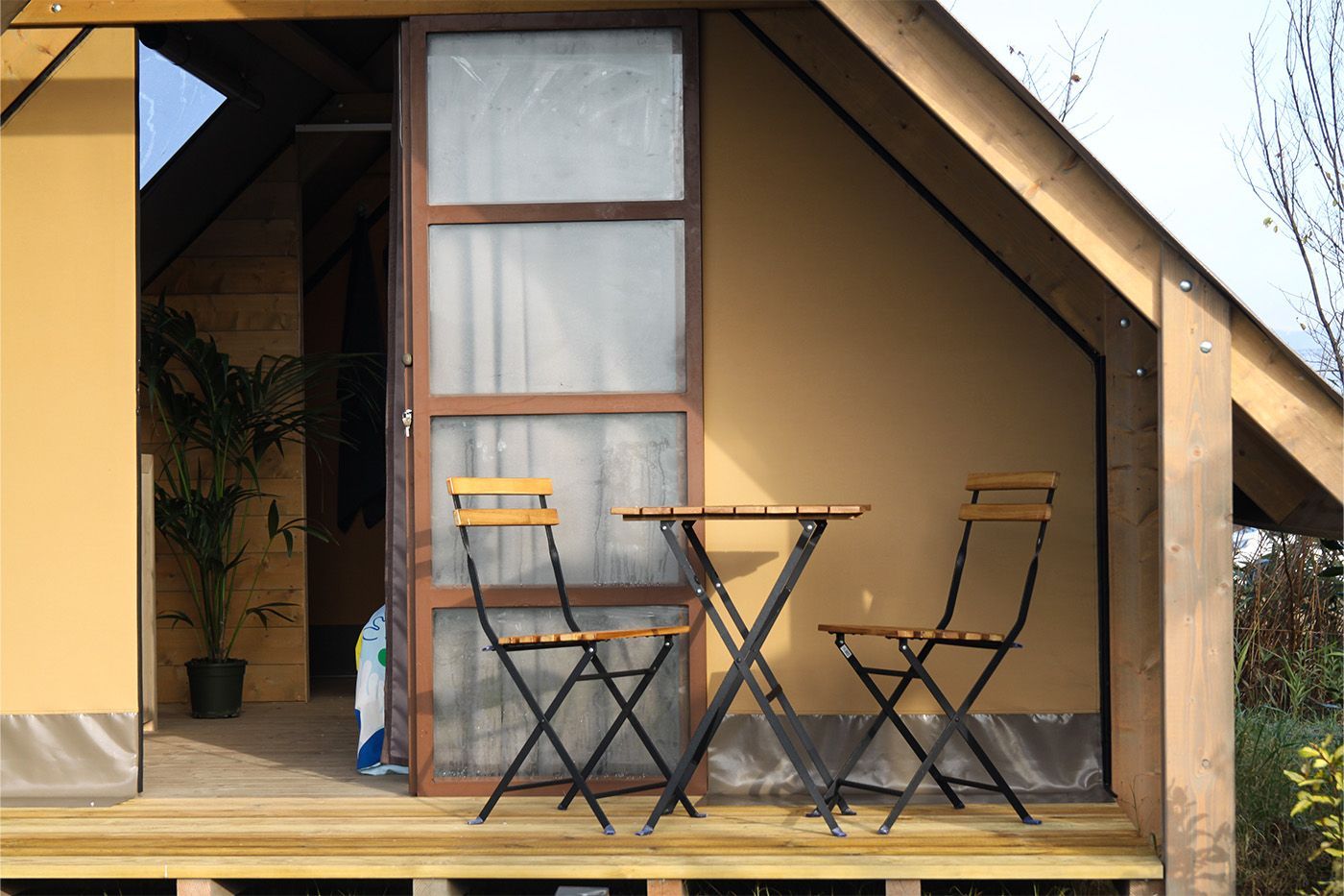 - Teli frontali e retro in tessuto policotone con aperture con cerniera e finestre in Cristal.