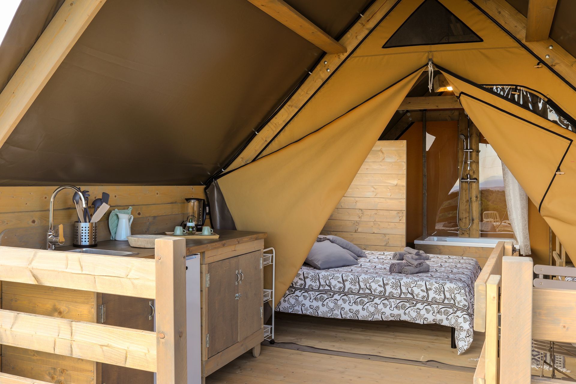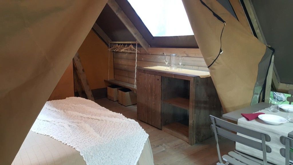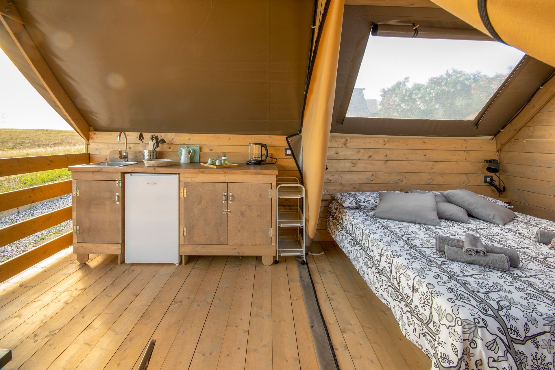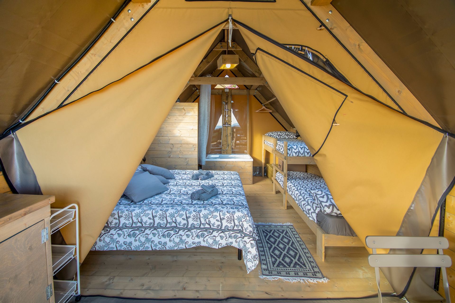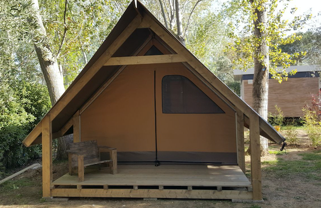 - Front and back curtains of polycotton fabric with zip openings and Cristal windows.