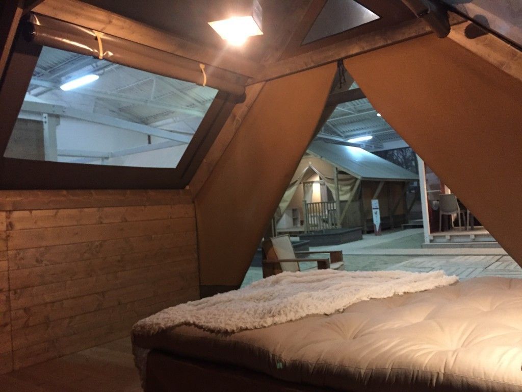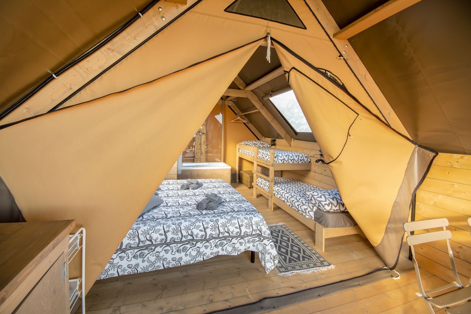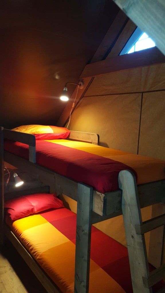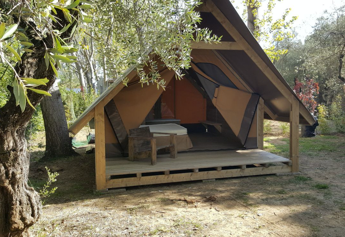 - Front and back curtains of polycotton fabric with zip openings and Cristal windows.