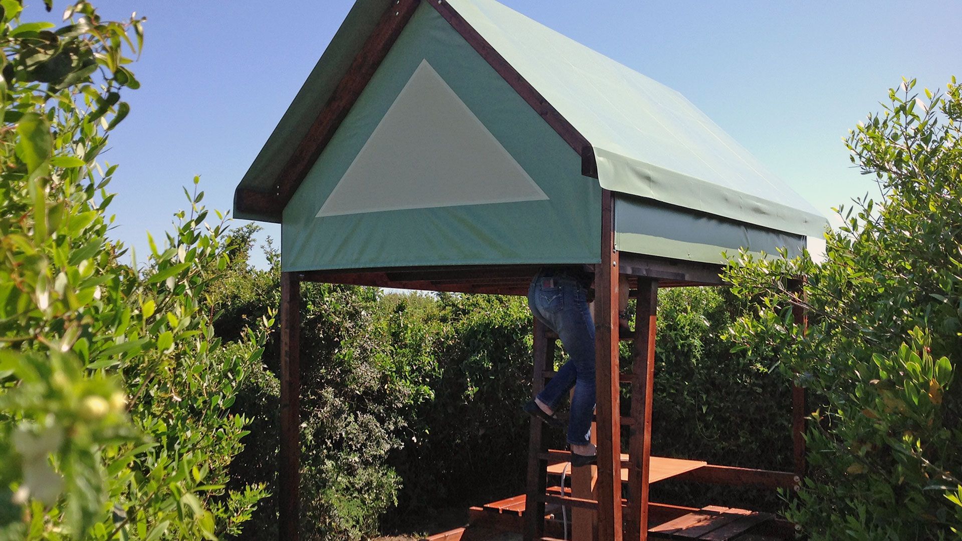 The Glant Rider is an innovative idea for transforming a small pitch into a romantic retreat or a comfortable stopover area for two-wheeled tourism.