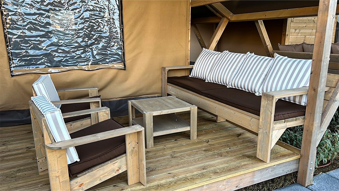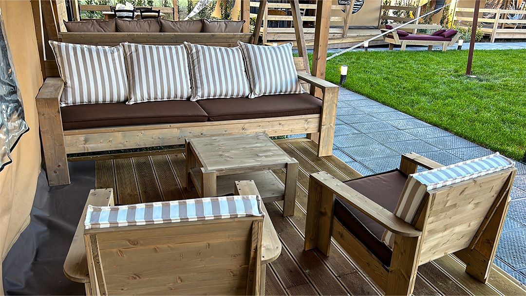 - Pavimenti interni e delle verande in tavole d’abete di spessore 2,5 cm maschiate.