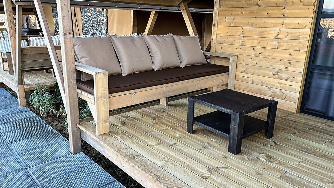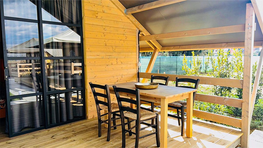 - Pavimenti interni e delle verande in tavole d’abete di spessore 2,5 cm maschiate.