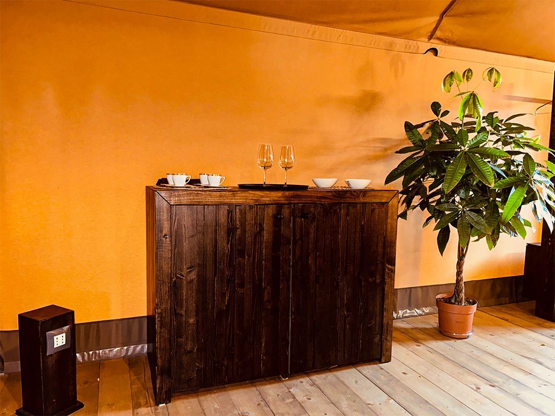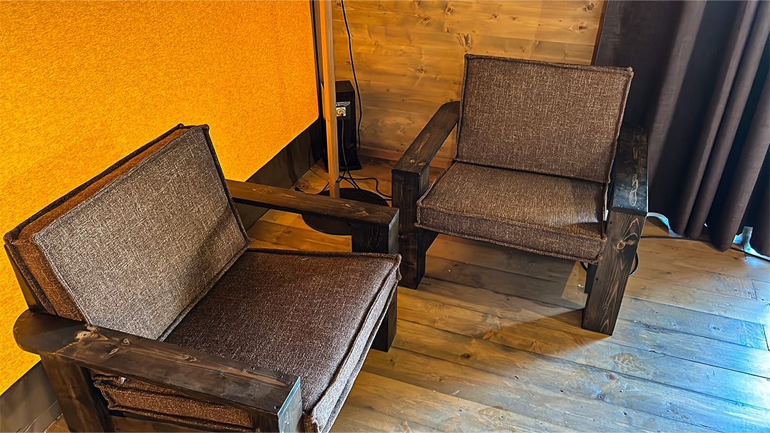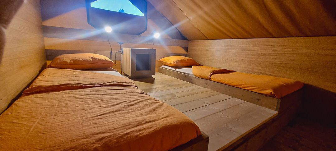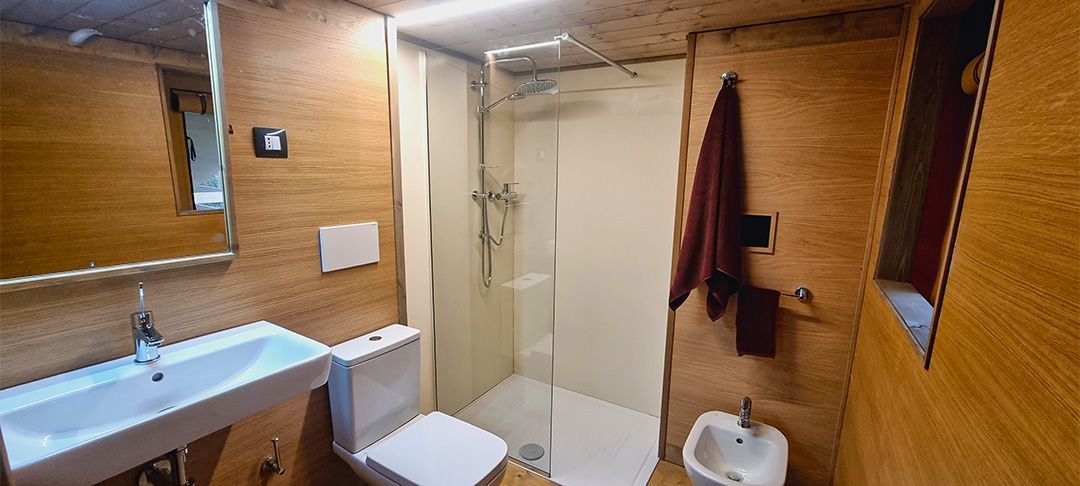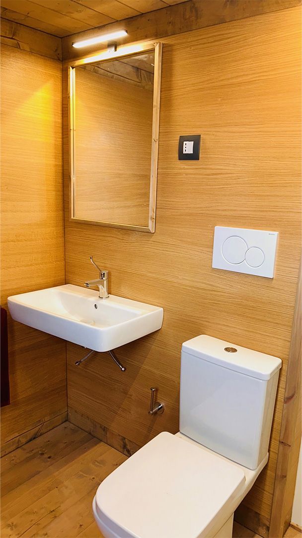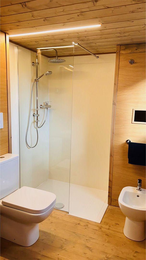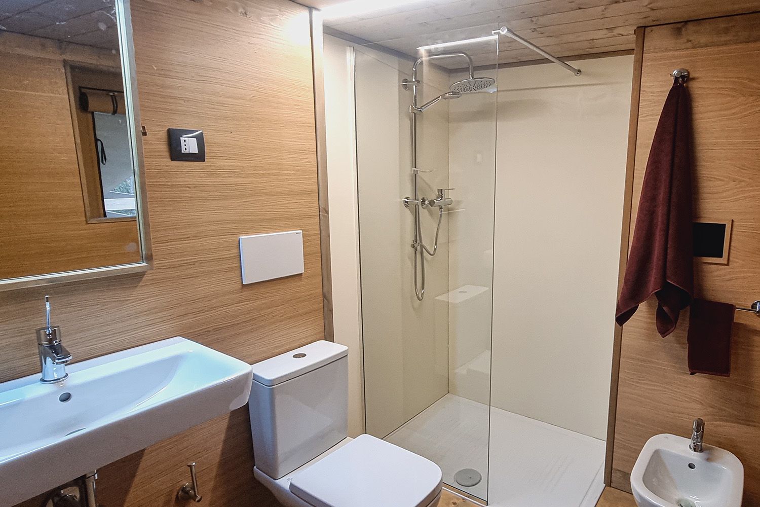 - Pareti interne in perline d’abete di spessore 2,5 cm.