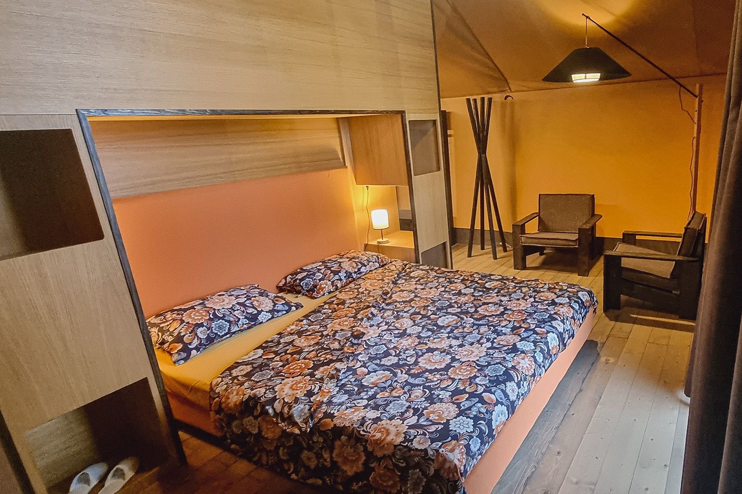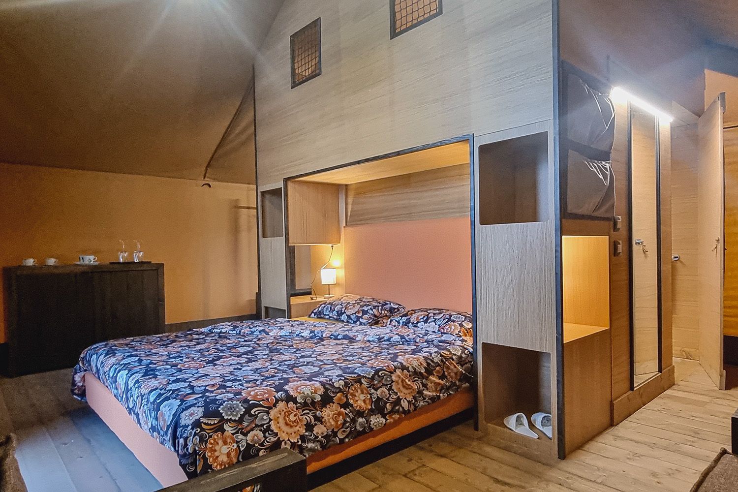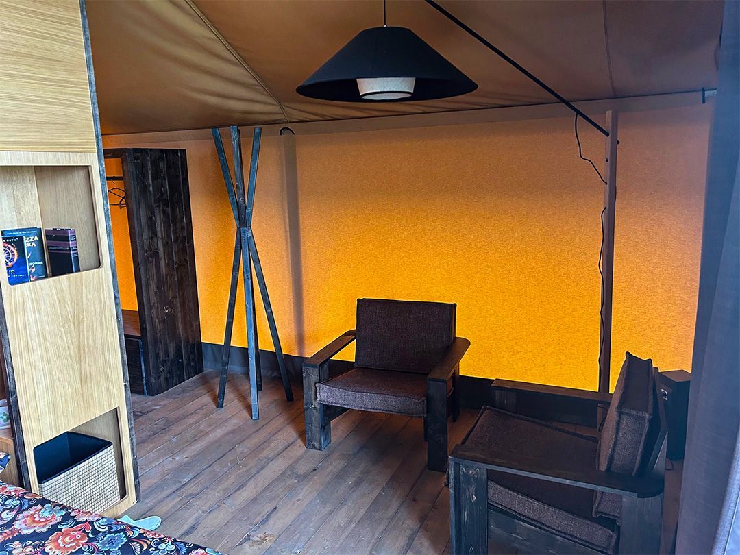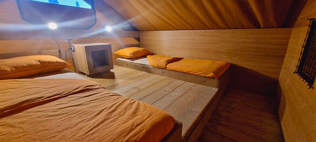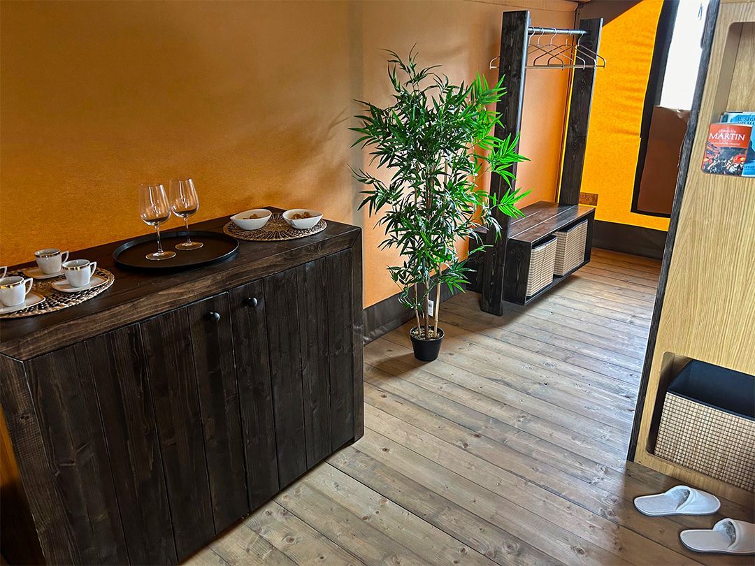 - Pareti interne in perline d’abete di spessore 2,5 cm.