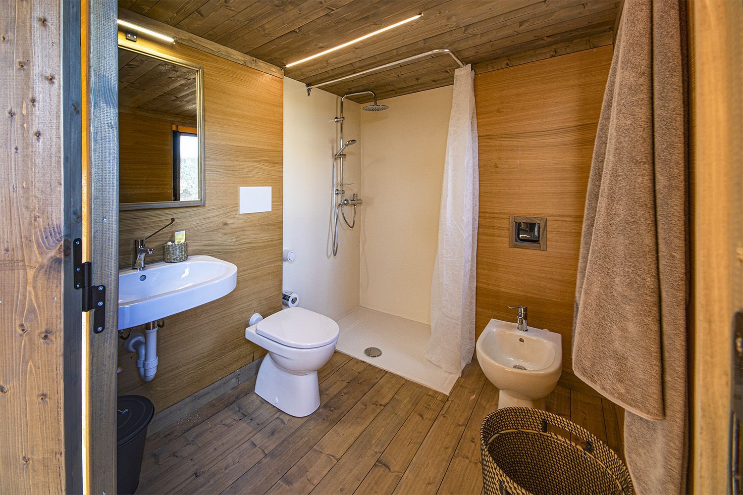 - Servizio Igienico dotato di lavabo, bidet e wc in ceramica, doccia cm 70×90, bollitore ad accumulo da 30/50 litri.